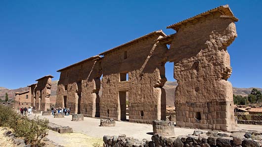 Destaca el Templo de Wiracocha, con 100 m de largo y 20 m de ancho, el que está compuesto por muros de adobe soportados sobre cimientos de piedra volcánica.