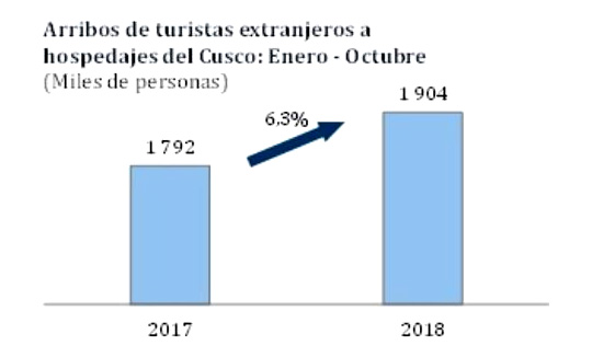 Arribo de turistas extranjeros a Cusco creció 6.3% de enero a octubre de 2018