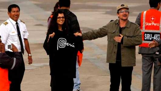 Bono arribó al aeropuerto Alejandro Velasco Astete de la ciudad de Cusco alrededor de la 1:30 de la tarde. En el terminal aéreo lo esperaban aproximadamente 200 seguidores.